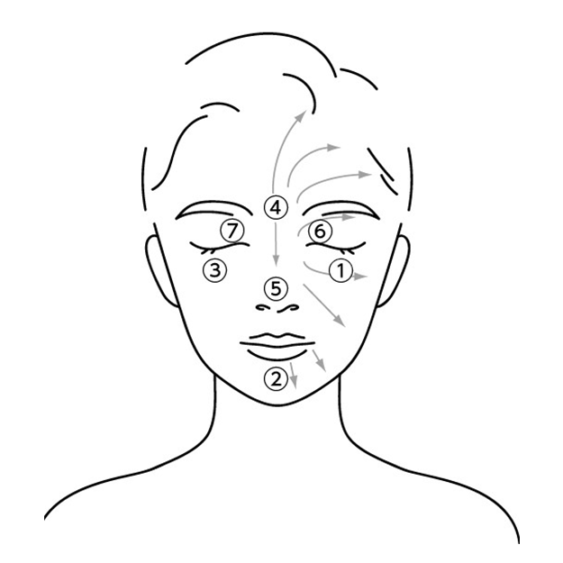 3. 请轻柔地滑动粉扑,从脸部中心向外侧均匀涂抹。